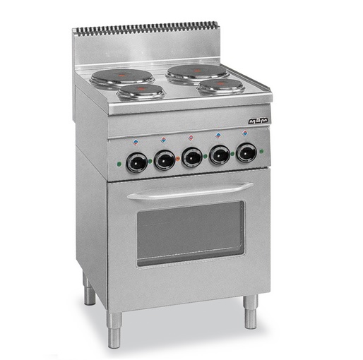 Profesionální sporák Minima 600 - s elektrickou troubou a elektrickým grilem. Pojistný ventil s termo pojistkou pro automatické blokování dodávky plynu. Elektrická trouba: multifunkční s grilem, s nastavitelným termostatem trouby 0 250 °C.