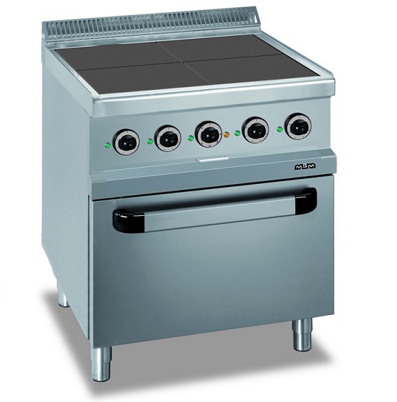 Profesionální elektrický sporák Magistra 700 s čtvercovými plotýnkami a elektrickou horkovzdušnou troubou.