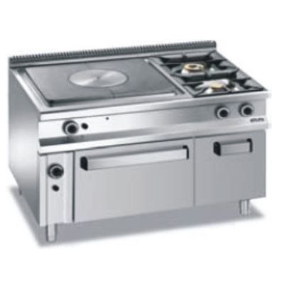 Profesionální plynový sporák Magistra 980 - s plynovou troubou + 2 plynové hořáky a skříňka. Celoplošná varná deska.