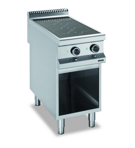 Indukční sporák - dvě plotny 5 kW, 6 poloh výkonu. Otevřená podestavba.