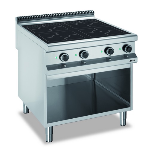 Indukční sporák - čtyři plotny 5 kW, 6 poloh výkonu. Otevřená podestavba.