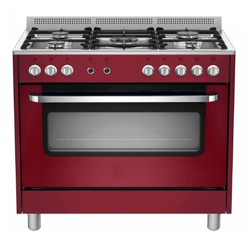 Plynový sporák, pro použití v lehkých provozech, s pěti hořáky 1 x 1 kW, 2 x 1,75 kW, 1 x 3 kW ,1 x WOK 4,25 kW. Horkovzdušná trouba 115 litrů, gril 1,8 kW. Časovač. Vnitřní rozměr trouby 760 x 470 x 400 mm.