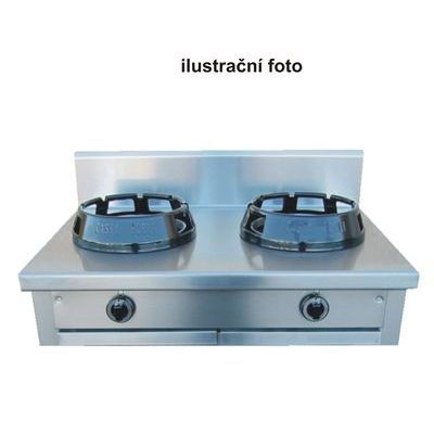 Profesionální plynový sporák Casta, horní modul. Čínské sporáky Casta jsou vyráběny přesně dle požadavků zákazníků přímo na míru. Výběr libovolných atmosférických hořáků s vertikálním plamenem bez vlivu na cenu: C 9,5 kW; T 14 kW; S 21 kW. Dále je možné za příplatek instalovat infračervený hořák B 23 kW (regulace 18-23 kW, požadováno navíc el.připojení 230V). Další variantou bez vlivu na cenu je možnost zvolit libovolnou kombinaci čínských výkonných hořáků s tradičními evropskými litinovými hořáky: P 3 kW; M 4,5 kW; G 7,5 kW - MODELY EURASIA. Konstrukce varné části z AISI 304 25/10 chrom-niklové oceli. Sporáky mohou být za příplatek vybaveny různými čistícími systémy dle přání zákazníka. Dále mohou být vybaveny vodovodními kohoutky s různým ovládáním. Možnost dodání sporáků bez podestavby, na otevřené nebo uzavřené (posuvná dvířka) podestavbě, s plynovou troubou GN2/1 vybavenou termoregulací 0°C-280°C, piezzoelektrickým zapalováním a časovačem. Možnost dodání též s elektrickou horkovzdušnou troubou. Modely s 1-10 hořáky v 1 nebo 2 řadách. Ovládání hořáků z jedné strany (ke zdi) nebo z obou stran (ostrovní - Island modely). Bez vlivu na cenu lze volit provedení s lemem nebo bez lemu. Další možnosti či příslušenství na vyžádání.