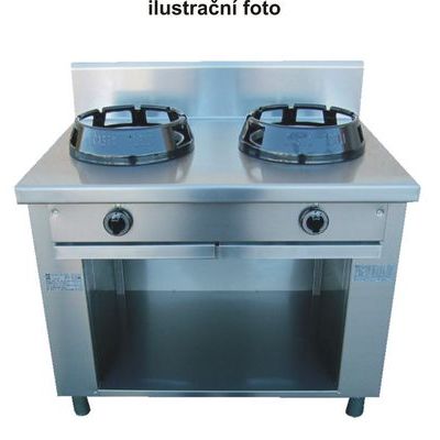 Profesionální plynový sporák Casta, otevřená podestavba. Čínské sporáky Casta jsou vyráběny přesně dle požadavků zákazníků přímo na míru. Výběr libovolných atmosférických hořáků s vertikálním plamenem bez vlivu na cenu: C 9,5 kW; T 14 kW; S 21 kW. Dále je možné za příplatek instalovat infračervený hořák B 23 kW (regulace 18-23 kW, požadováno navíc el.připojení 230V). Další variantou bez vlivu na cenu je možnost zvolit libovolnou kombinaci čínských výkonných hořáků s tradičními evropskými litinovými hořáky: P 3 kW; M 4,5 kW; G 7,5 kW - MODELY EURASIA. Konstrukce varné části z AISI 304 25/10 chrom-niklové oceli. Sporáky mohou být za příplatek vybaveny různými čistícími systémy dle přání zákazníka. Dále mohou být vybaveny vodovodními kohoutky s různým ovládáním. Možnost dodání sporáků bez podestavby, na otevřené nebo uzavřené (posuvná dvířka) podestavbě, s plynovou troubou GN2/1 vybavenou termoregulací 0°C-280°C, piezzoelektrickým zapalováním a časovačem. Možnost dodání též s elektrickou horkovzdušnou troubou. Modely s 1-10 hořáky v 1 nebo 2 řadách. Ovládání hořáků z jedné strany (ke zdi) nebo z obou stran (ostrovní - Island modely). Bez vlivu na cenu lze volit provedení s lemem nebo bez lemu. Další možnosti či příslušenství na vyžádání.