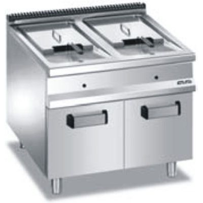 Profesionální plynová fritéza skříňová Magistra 980. Dodáváno s dvířky. Dvojitá, objem 2x18 litrů.