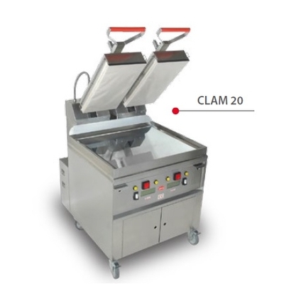 Profesionální kontaktní gril. Vaří obě strany zároveň. Horní deska se automaticky otevře na konci cyklu vaření. Snižuje dobu vaření o 50%. Elektronický řídicí systém pro horní desku a plotnu. Nastavení tloušťky výrobku. Ultra-rychlé vaření se zachováním přírodní šťávy potravin. Těleso z nerezové oceli. Snadno se čistí. Rýhované modely na vyžádání.