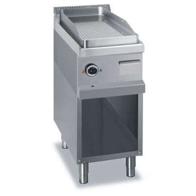 Profesionální plynová pečící plotna Magistra 700 - na otevřené podestavbě (monoblok), jednoduchá vroubkovaná chromovaná.