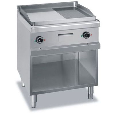 Profesionální elektrická pečící plotna Magistra 700 - na otevřené podestavbě (monoblok), dvojitá 1/2 hladká 1/2 vroubkovaná chromovaná.