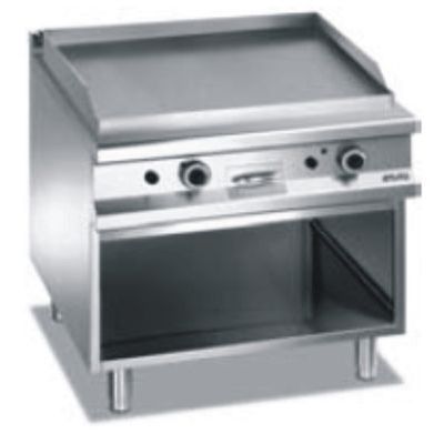 Profesionální plynová pečící plotna Magistra 980 - na otevřené podestavbě (monoblok), dvojitá vroubkovaná na otevřené skříňce.
