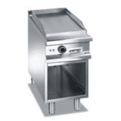 Profesionální plynová pečící plotna Magistra 980 - na otevřené podestavbě (monoblok), jednoduchá vroubkovaná na otevřené skříňce.