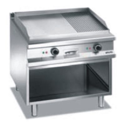 Profesionální plynová pečící plotna Magistra 980 - na otevřené podestavbě (monoblok), dvojitá 1/2 hladká 1/2 vroubk. chrom. na otevř. skříňce.