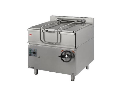 Profesionální plynová smažící pánev. Objem 50 litrů, nerez nádoba, rozměr vany 700x422x160 mm, ruční vyklápění, baterie na studenou vodu.
