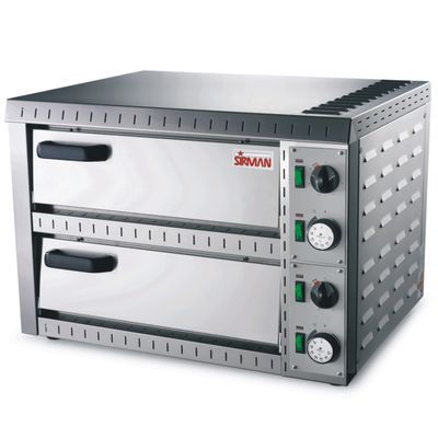 Pizza pec - vyrobeno nerez oceli, komory šamot, topná tělesa odolná proti nárazům. Odvzdušnění s klapkou. Kapacita 2x2 pizzy průměr 225 mm. 2 komory 410x360x80 mm.