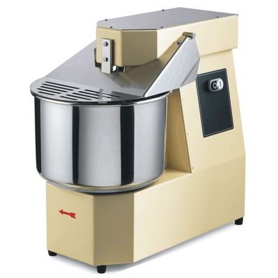 Spirálový hnětač - vyroben z masivní oceli. Odolný proti poškrábání - povrchová úprava práškové lakování. Mísa se zesíleným okrajem a nerez AISI 304 S / S hřídelí. Zesílený řetězový pohon. Na vyžádání lze doplnit o časovač.