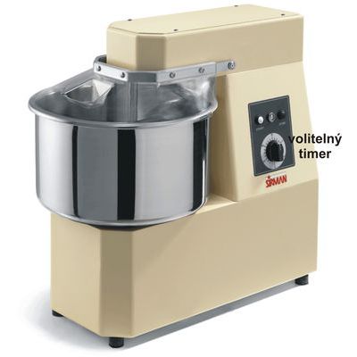 Spirálový hnětač - vyroben z masivní oceli. Odolný proti poškrábání - povrchová úprava práškové lakování. Mísa se zesíleným okrajem a nerez AISI 304 S / S hřídelí. Zesílený řetězový pohon. Víko s otvorem pro přidávání ingrediencí během provozu. Volitelné: kolečka, časovač a mřížka-kryt nádoby. Na objednávku 2 rychlostní verze.