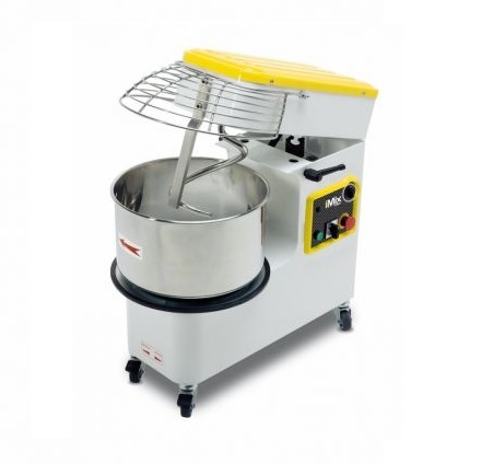 Spirálový hnětač - vyroben z masivní lakované nerezové oceli. Kolečka, časovač a mřížka-kryt nádoby. Řetězový pohon. Dvě rychlosti. Výklopná hlava.