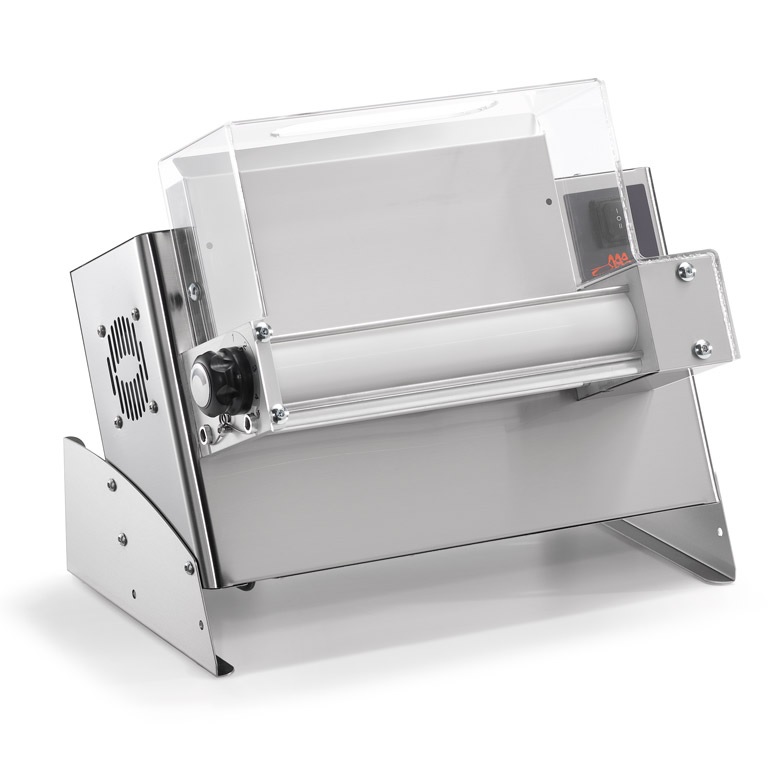 Vyvalovačka těsta - vyrobena z nerezové oceli. Vertikální konstrukce. Dávka těsta 80 - 210 g. Průměr pizzy 14 - 30 cm.