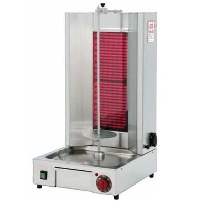 Gril na gyros - elektrický - VE500 MON, 2 tělesa, špíz 465 mm, 10-15 kg masa, motor nahoře. Sklokeramická deska.