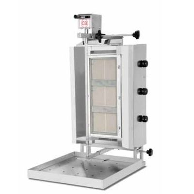 Gril na gyros - plynový - 3B/50, 3 hořáky, špíz 550 mm, 15-20 kg masa, motor nahoře.