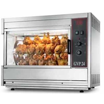 Gril na kuřata - elektrický - horkovzdušný - 24-28 kuřat, 5 košů, manuální timer, panoramatický