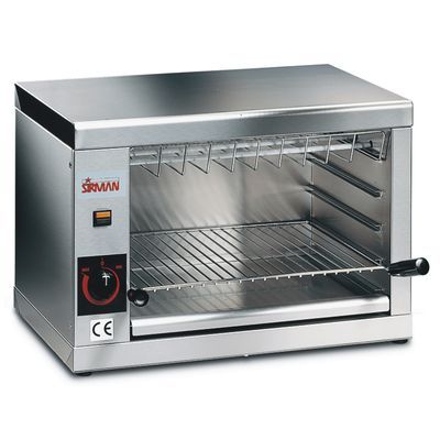 Salamander pevný - vyroben z nerezové oceli. Rošt a kryt topných těles z chromované oceli. Termostat pro nastavení teploty. Snadno vyjímatelný tác na nečistoty. Čtyři pevné polohy roštu. Quartzová tělesa.