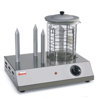 HOT DOG - celonerezové provedení. 3 trny. Zásobník z tvrzeného skla na udržování 30 párků v páře.