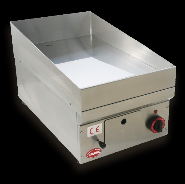 Olejová pečící plotna - pánev. Olejová lázeň o objemu 4 litry. Varná plocha 347 x 500 mm. Pro každý typ uzenin. Tvrdý povrch chrom 50 mikronů. Nastavitelný termostat až do 290 ° C. Mechanický termostat. Zásuvka na tuk. Snadno se udržuje. Tělo z nerezové oceli AISI 304.