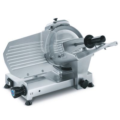 Profesionální nářezový stroj s hladkým nožem Sirman. Aluminiová slitina.Provedení gravitační - šikmé, řemenový pohon. S ventilovaným motorem - 60 min. chodu ve středních a velkých restauracích.