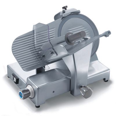 Profesionální nářezový stroj s hladkým nožem Sirman. Aluminiová slitina.Provedení gravitační - šikmé, řemenový pohon. Vhodné pro velké restaurace, kantýny a supermarkety.