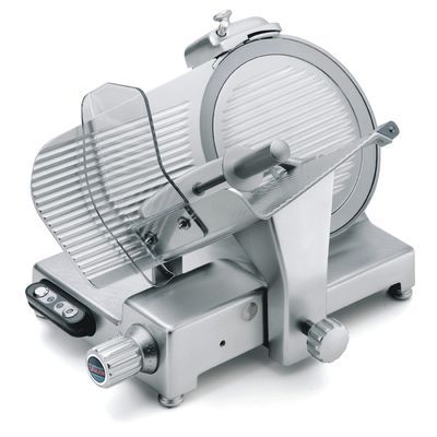 Profesionální nářezový stroj s hladkým nožem Sirman. Aluminiová slitina.Provedení gravitační - šikmé, řemenový pohon. Vhodné pro velké restaurace, kantýny a supermarkety. Modely TOP mají navíc nožky, madla a knoflíky vyrobeny z hliníkové slitiny; on-off tlačítka z nerezové oceli.