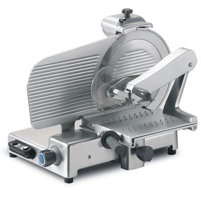 Profesionální nářezový stroj s hladkým nožem Sirman. Aluminiová slitina. Provedení vertikální - rovné, řemenový pohon. Vhodné pro velké restaurace, kantýny a supermarkety. BS znamená “speciální rameno” = nejlepší řešení pro “prosciutto” (šunka), špek, carpaccio (velké produkty nebo s nepravidelným tvarem).