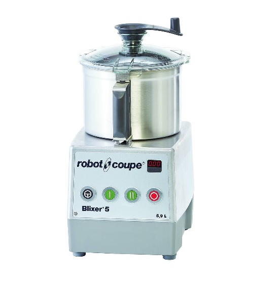 Profesionální kutr R 5 V.V. určen pro menší gastronomické provozy – restaurace, bistra, lahůdkářství a cukrárny s max. denní kapacitou do 80 porcí, umožňuje zpracování masa, zeleniny a ovoce, přípravu těsta, paštik, majonéz, pyré, pomazánek a strouhanky a rovněž sekání bylinek a koření a drcení ořechů a mandlí. MOTOROVÝ BLOK - indukční motor, asynchronní motor pro profesionální použití zaručující delší životnost a spolehlivost stroje; tichý chod motoru bez jakýchkoliv vibrací, motor nevyžaduje žádnou údržbu