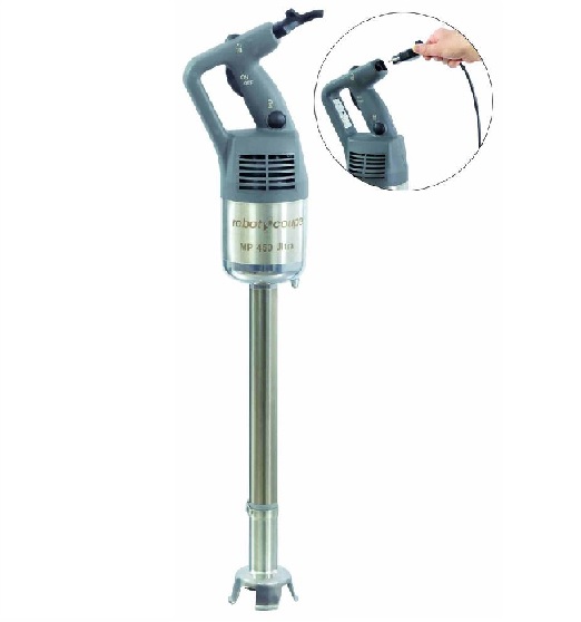 Ruční ponorný mixér MP 450 Ultra je vhodný pro restaurace, školní jídelny, lahůdkářství, max zpracovávaného množství do 100 l. Základní výbava: mixovací nůž, držák na zavěšení, klíč. 3 úrovňové jištění vodotěsnosti nohy mixéru. Zvon a motorový blok nerez. Nový patentovaný systém Easy Plug – odmontovatelný přívodní kabel pro snazší výměnu kabelů a delší životnost, nový systém navíjení přívodního kabelu, čep na motorovém bloku umožňuje jednodušší navíjení, prodlužuje životnost a rovněž slouží jako podpěra na okraji nerez nádoby pro lepší manipulaci, kontrolka na na rukojeti signalizuje správné zacvaknutí přívodní šňůry v rukojeti.