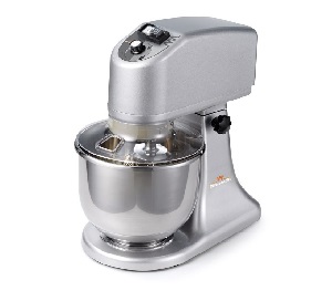 Hnětač planetární - tělo a základna z lakovaného kovu. V základní výbavě šlehač+hnětač+míchač a nádoba z nerez oceli. Nádoba má objem 7 litrů. Regulace otáček 75 - 660 ot. / min. Ochraná mřížka nad mísou. Určeno pro lehké a střední provozy. Vhodný pro míchání produktu se středně hustou konzistencí (např. chlebového těsta, cca 1 kg mouky). Není vhodný pro tvrdé směsi.