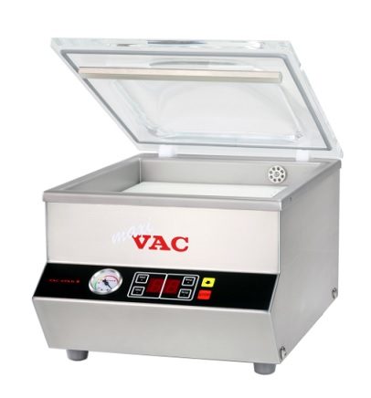 Vakuová balička - pro profesionální použití. Výkonná vakuová jednotka s profesionální vývěvou pro vysoký výkon a dobrou spolehlivostí. Tento stroj disponuje širokým svárem pro šíři sáčku do 250cm. Přístroj se vyznačuje jednoduchou manipulací a velmi dobrým zpracování. Ideální poměr cena / výkon. Dvojitá svařovací lišta zajistí ještě lepší a pevnější svár. Stroj umožnuje funkci STOP a také manuální svařování během cyklu. Maximální velikost sáčku 250x350 mm. Délka uzavírací lišty 270 mm.Počet svařovacích lišt - 1.rnPočet komor 1. Výkon vývěvy 5 m3/h. Rozměr komory (š x h x v) 275 x 320 x 135 mm.