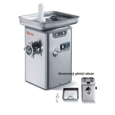 Profesionální mlýnek na maso - vhodný pro všechny gastronomické provozy. Výrobky označené "ICE" s chlazením (teplotně-elektrický systém). Uzavřená olejová lázeň převodovky, komplet z nerezu. Ventilátorem chlazený motoru. Nepřetržitý provoz. Modely s označením "Q" mají čtvercový plnící otvor, ostatní kulatý plnící otvor. Výkon mlýnků vždy závisí na druhu zpracovávaného masa a typu použité mřížky a řezného složení.