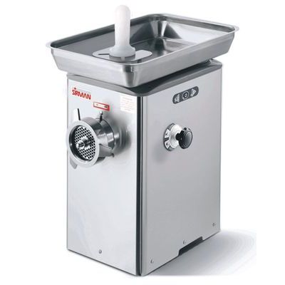 Profesionální mlýnek na maso - vhodný pro všechny gastronomické provozy. Uzavřená olejová lázeň převodovky, komplet z nerezu. Ventilátorem chlazený motoru. Nepřetržitý provoz. Modely s označením "Q" mají čtvercový plnící otvor, ostatní kulatý plnící otvor. Výkon mlýnků vždy závisí na druhu zpracovávaného masa a typu použité mřížky a řezného složení.