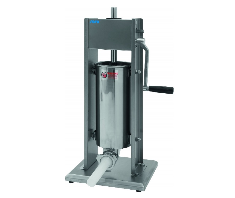 Plnička - narážečka. Provedení ruční - vertikální. Vyrobeno z nerez oceli, píst plastový. 4 plnící trubice: ? 10, 20, 30 nebo 35 mm. Kapacita 5l.