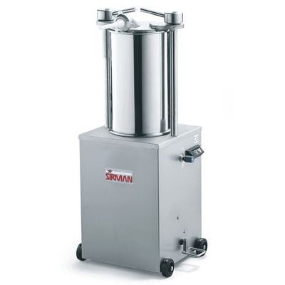 Plnička - narážečka. Provedení elektrické - vertikální. Vyrobeno z nerez oceli AISI 304 S / S. Píst s ventilem. Silný hydraulický systém - 120 barů. Silikonové těsnění uvnitř válce pro lepší těsnost a delší životnost. Hermetická ochrana hydraulického válce. Silný a tichý ventilovaný motor. Automatický návrat pístu při zastavení motoru. Gumová kolečka. Olejová nádrž s hladinoměrem.