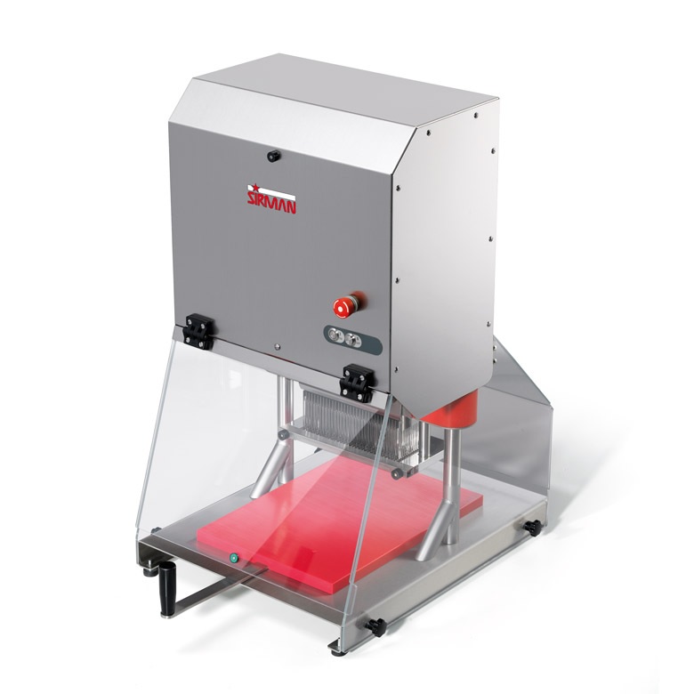 Elektrický tenderizér - dodávané s noži (213x80x62 mm). Pohyblivé, obsluhou řízené prkénko 300x430 mm. Maximální velikost zpracovávané suroviny - 216x280x100 mm. Celonerezové provedení.