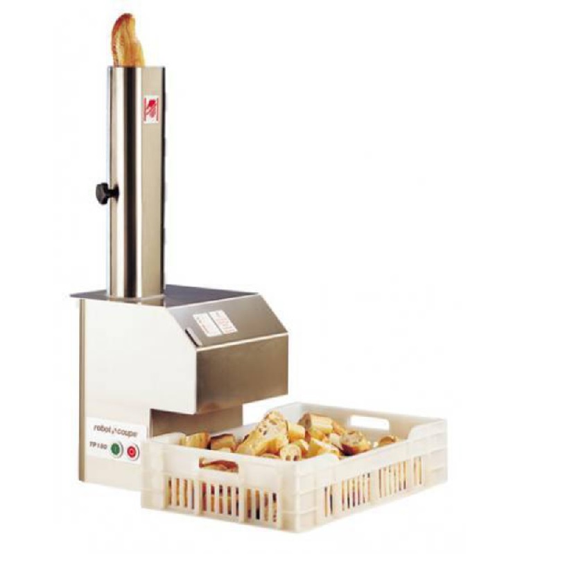 Kráječ baget, vek a chleba, který by měl být ne zcela čerstvý a nakrájený na půlkrajíce. Celonerezové provedení. Indukční motor. Infračervený bezpečnostní systém, který automaticky zastaví zařízení v případě, že obsluhující osoba vloží ruku do tubusu. Bezpečnostní systém zařízení vypne v případě špatné funkce nebo chybné obsluhy. Po automatickém vypnutí je možné stroj opět zapnout až po 1 min. V případě otevření víka se zařízení rovněž automaticky vypne. Výkon 180 - 360 plátků/hod., tloušťka plátků 8 až 80 mm, krájecí tubus 150/125 mm, regulovatelná výška tubusu.