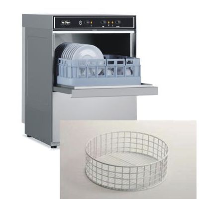 Myčka skla jednoplášťová - DIRECT LINE. Ovládací prvky elektro-mechanické, mycí cyklus 2 minuty. Dávkovač oplachu. Dva kulaté koše.