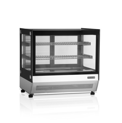 Profesionální chlazená obslužná vitrína nerezová - vhodná pro prezentaci zákusků, dortů, sendvičů či baget o objemu 120 l. Umístění výrobků lze regulovat nastavitelnými policemi. Rovné předn sklo, prosklené boky a LED osvětlení zajišťují ideální viditelnost prodávaného zboží.