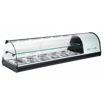 Profesionální stolní vitrína dvoupatrová - k dispozici v 5 exkluzivních standardních barvách ( V26N = černá, V26R = červená, V26A = stříbrná, V26E = ebenová, V26B = bílá). Nastavitelný elektronický termostat, který obsahuje bezpečnostní systém, časovač, a stálý ukazatel teploty s digitálním odečtem. Snadné čištění. Posuvné dveře skleněné odolné proti úderu a otěru. Konzervace potravin mezi 1 ° C a 5 ° C v "potravinové zóně ". Systém šíření chladu, který poskytuje rovnoměrné rozdělení teploty. Osvětlovací systém pomocí LED diod. Ekologické chladivo R - 134A CFC -free, a vstřikovaná polyuretanová izolace bez CFC. Tichý kompresor Danfoss. Nastavitelné nohy. Kapacita 6 x 1/3-40 GN .