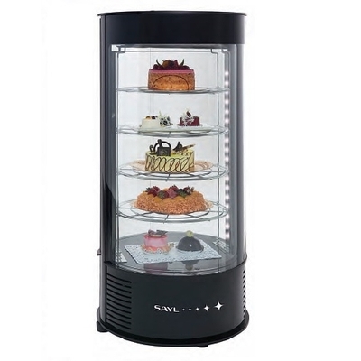 Profesionální stolní vitrína - černá. 5 pozic, 4 kovové rošty. Nastavitelný elektronický termostat, který obsahuje bezpečnostní systém, časovač, a stálý ukazatel teploty s digitálním odečtem. Snadné čištění. Osvětlovací systém pomocí LED diod.
