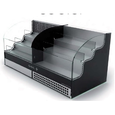 Profesionální stolní vitrína. Poschoďovité uložení, 3 patra chlazená,3 patra neutrální.