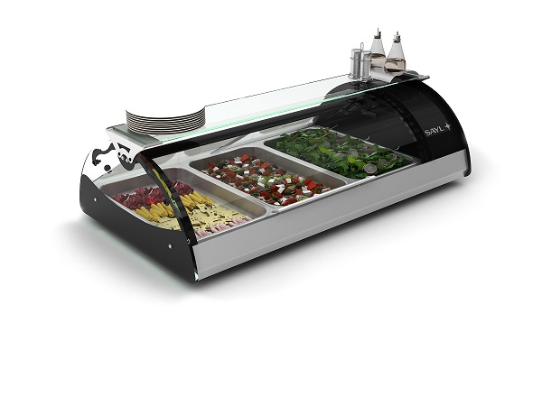 Profesionální stolní vitrína - vhodná na skladování ryb. Plocha 3xGN1/1-65. Nerez AISI 316 Anticor. Nastavitelný elektronický termostat, který obsahuje bezpečnostní systém, časovač, a stálý ukazatel teploty s digitálním odečtem. Snadné čištění. Osvětlovací systém pomocí LED diod.