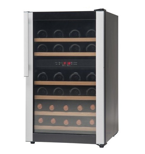 Vinotéka - určeno pro prezentaci vína, vhodné pro všechny gastronomické provozy. Ventilované chlazení, automatické odtávání, digitální termostat, kouřové sklo dveří, 3 police, LED osvětlení vnitřního prostoru, vnitřní prostor – kamenná čerň, nastavitelné nožky, kolečka pro snadnou manipulaci, lze měnit otevírání dveří. Teplota dolní části +10 až +18, v dolní části +5 až +10.