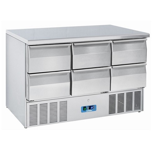 Profesionální chlazený stůl nerezový - určeno pro skladování potravin a jako pracovní plocha, vhodné pro všechny gastronomické provozy. 6 x zásuvka.