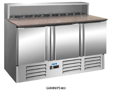 Profesionální chlazený pizza stůl nerezový - určeno pro skladování potravin a jako pracovní plocha, vhodné pro všechny gastronomické provozy. Granitová deska. 8 x GN 1/6.